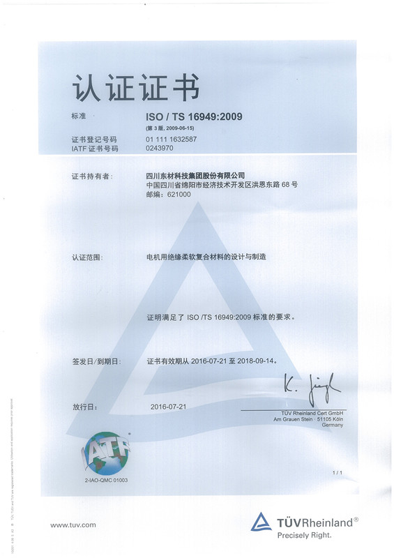 東材科技在國內(nèi)同行業(yè)企業(yè)當(dāng)中率先通過國際ISO9001的質(zhì)量體系認(rèn)證,通過ISO10012國際計(jì)量體系、ISO14001環(huán)境管理認(rèn)證體系、OHSAS18001職業(yè)健康安全體系、GBT 29490知識(shí)產(chǎn)權(quán)管理體系、GBT23331能源管理體系認(rèn)證企業(yè)、IATF16949汽車質(zhì)量管理體系認(rèn)證,不僅使公司產(chǎn)品質(zhì)量保障體系達(dá)到國際化的新標(biāo)準(zhǔn),而且為產(chǎn)品質(zhì)量的穩(wěn)定提供了強(qiáng)有力的保障。